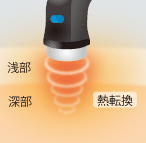 超音波が生体組織に照射される際に生じる熱で、温熱作用を発生させ、超音波が到達している範囲を立体的に温めることができます。